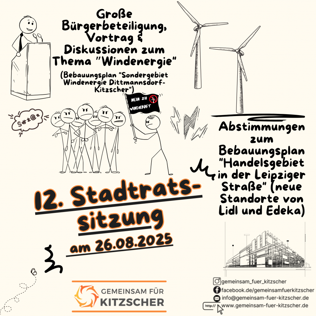 Deshalb haben wir dafür gestimmt, die Entscheidung über den B-Plan (Bebauungsplan) „Sondergebiet Windenergie Dittmannsdorf-Kitzscher“ zu vertagen. Wir werden hierzu eine FAQ veröffentlichen, die unseren Wissensstand widerspiegelt und die den Bürgerinnen und Bürgern helfen soll, ihre eigene Meinung anhand von Fakten zu bilden.